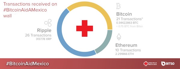 Una de estas ayudas ha venido de bitso, un exchange mexicano que se usa para intercambiar monedas digitales, quien ha creado una campaña de ayuda la recaudación hasta ahora ha sido de un uno punto dos millones de pesos en monedas digitales, estas ayudas han llegado de todas partes del mundo.